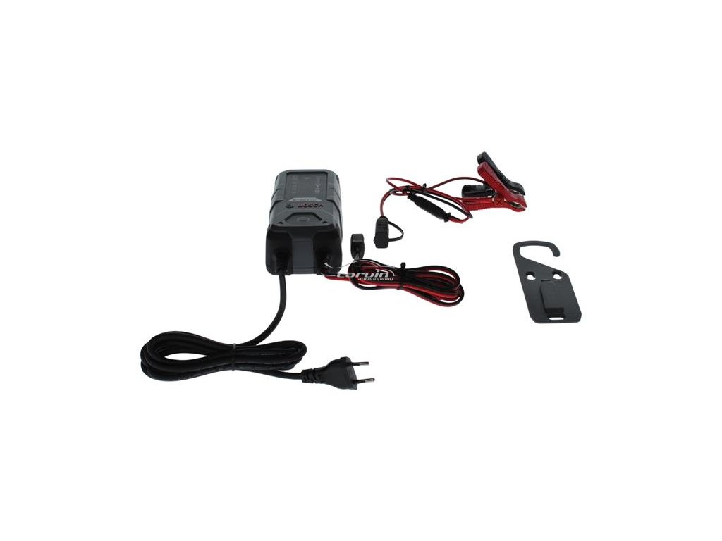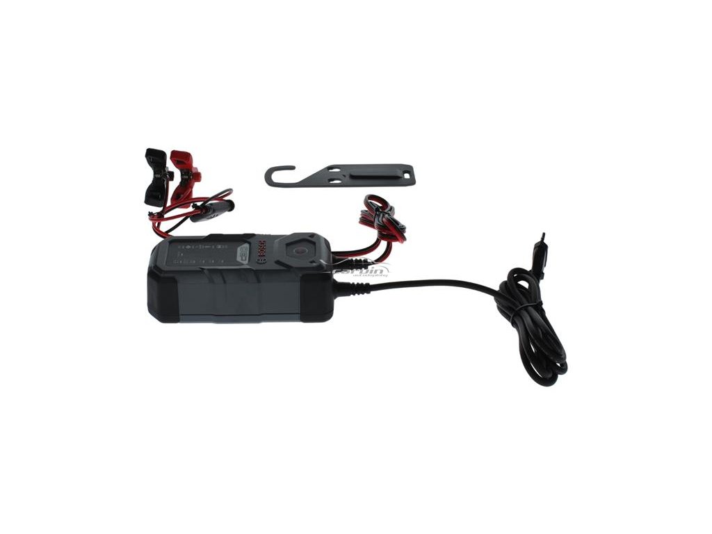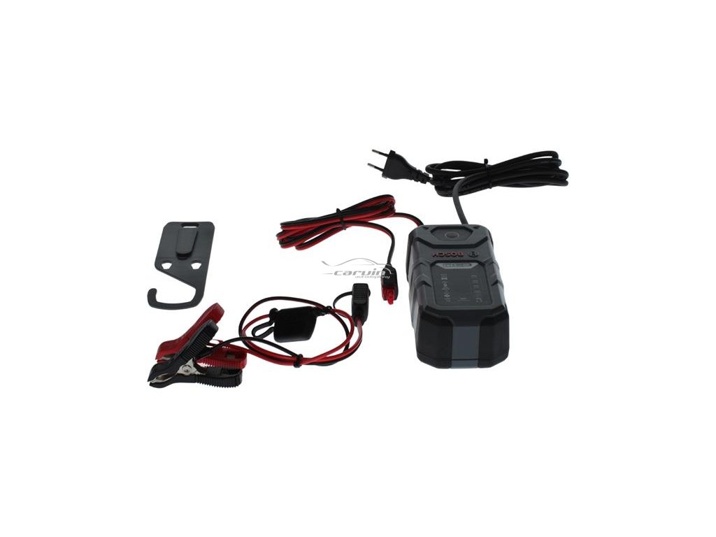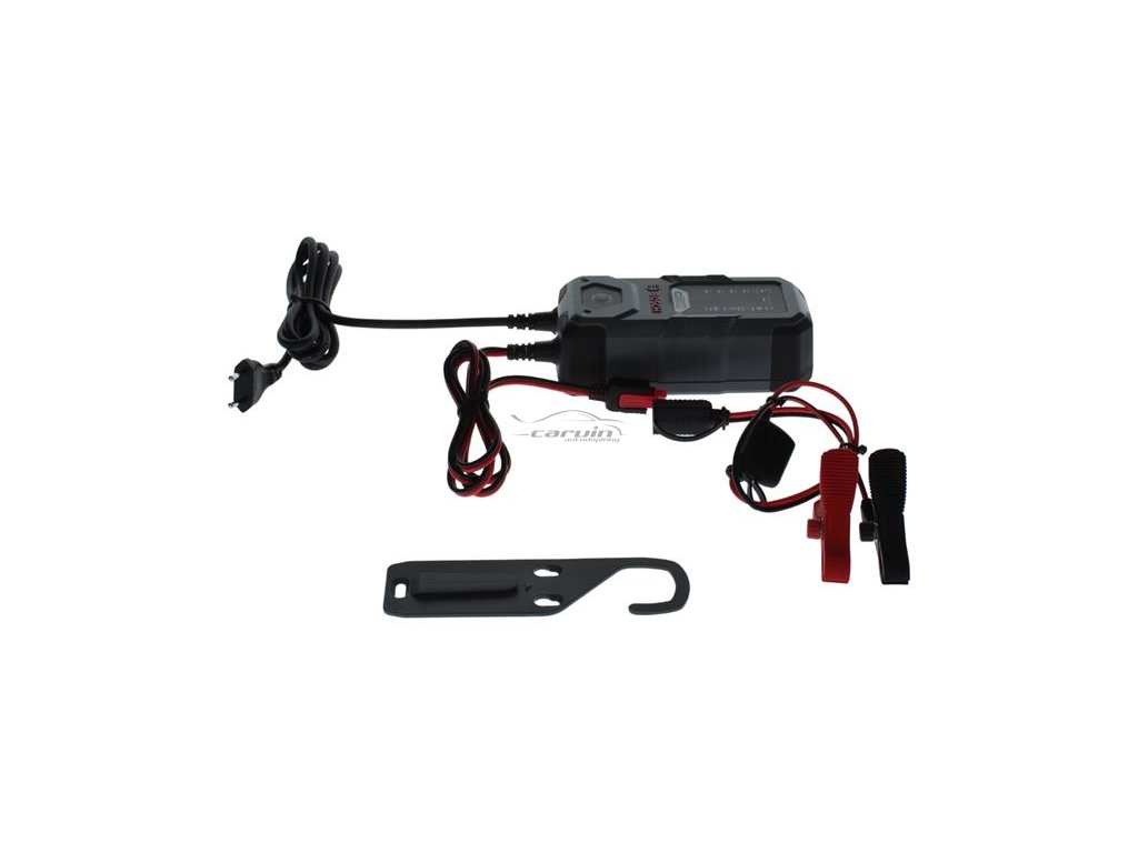 Nabíječka autobaterií 6 V a 12 V - pro AGM, EFB, gelové, zaplavené (PbWet) baterie, minimální nabíjecí proud 0,8 A, maximální kapacita nabíjené baterie 120 Ah, minimální napětí napájené baterie 6 V, provozní teplota od 0 do 40 °C, stupeň krytí IP65, ochrana proti přepólování, normální a udržovací nabíjení, mikroprocesorové řízení, rozměry 5,4 × 8,1 × 16,9 cm (V׊×D)