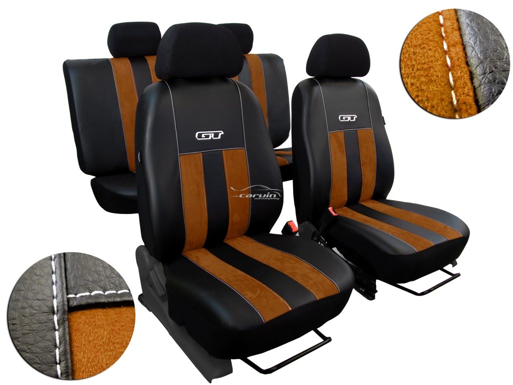 Velmi kvalitní, silné autopotahy z čalounické syntetické kůže a alcantary. Tuningové autopotahy.Středové pruhy z textilní alcantary. Moderní výšivka GT. Jediněčný tuningový vzhled luxusního koženého interiéru. Ozdobné prošití v bílé barvě. Velmi snadná montáž, dokonale sedí na sedadlech. Snadná údržba - stačí otřít vlhkým hadříkem. Zboží je atestováno - ATEST 8SD. Sada autopotahů na celé auto včetně povlaků hlavových opěrek. Vhodné pro auta s bočními airbagy, ale lze použít i pro auto, které boční airbag nemá (speciální šev ). VYROBENO V EU.Doplňkové parametry
