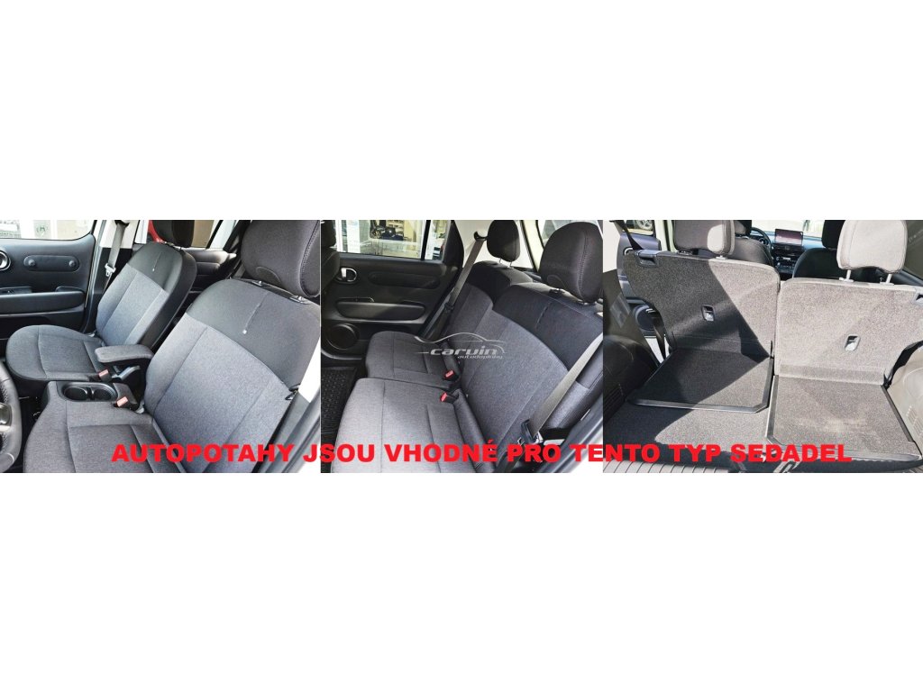 Kvalitní, silné autopotahy z čalounické látky včetně zadní části zadních opěradel v zavazadlovém prostoru.