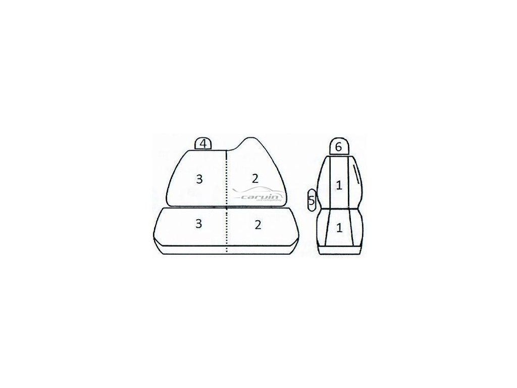 Na ilustrační fotografii je vyfocena sedačka z auta Škoda Octavia II. Vzhledem k tomu, že auta mají různá sedadla a autopotahy jsou šité přesně dle tvaru sedaček v konkrétním autě, potahy pro Váš vůz můžou se od ilustrační fotky tvarově lišit.