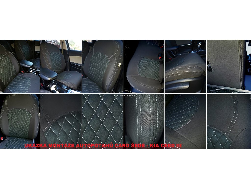 Zakázková výroba. Na ilustrační fotografii je vyfocena sedačka z auta Škoda Octavia II. Vzhledem k tomu, že auta mají různá sedadla a autopotahy jsou šité přesně dle tvaru sedaček v konkrétním autě, potahy pro Váš vůz se můžou od ilustrační fotky tvarově lišit. Při výrobě a zpracování střihů pro konkrétní auto je vždy přihlíženo k původním švům a tvarům sedadel, a k tomu, aby výsledný efekt byl co nejlepší z estetického a funkčního hlediska.