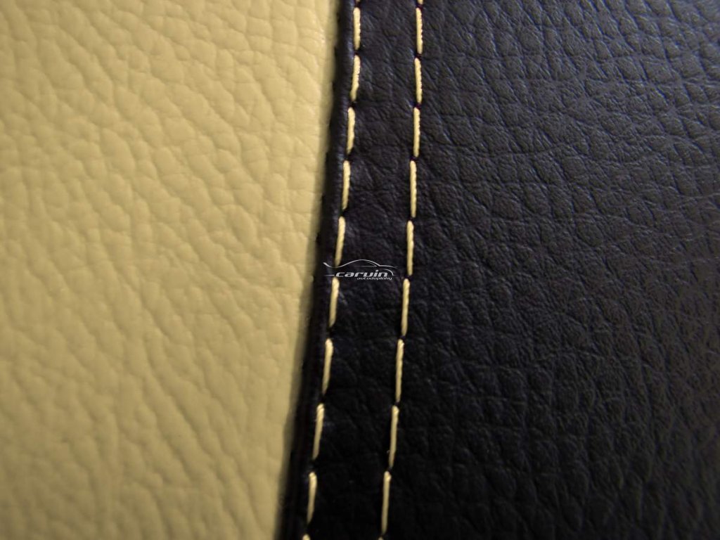 Velmi kvalitní, silné autopotahy z čalounické syntetické kůže. Jediněčný vzhled luxusního koženého interiéru. Dvojité barevné prošití v barvě středového pruhu. Velmi snadná montáž, dokonale sedí na sedadlech. Snadná údržba - stačí otřít vlhkým hadříkem. Zboží je atestováno - ATEST 8SD. Sada autopotahů na celé auto včetně povlaků hlavových opěrek. Vhodné pro auta s bočními airbagy, ale lze použít i pro auto, které boční airbag nemá (speciální šev ) VYROBENO V EU !!!