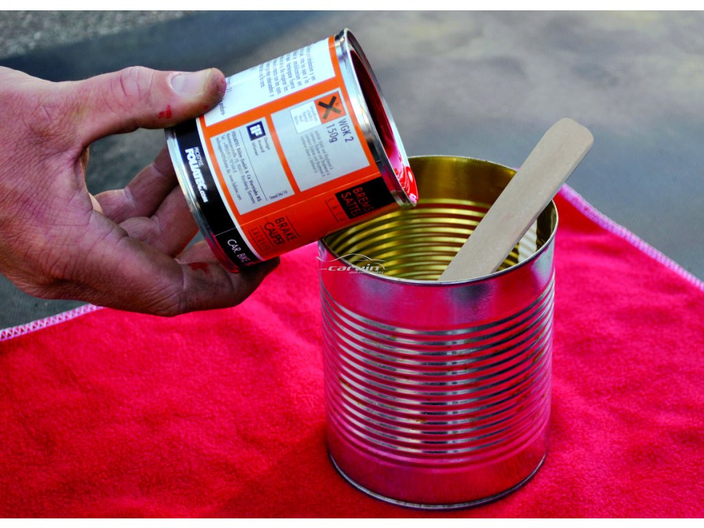 = K aplikaci barvy na třmeny je vhodné zakoupit kelímek s vyznačeným mísicím poměrem a maskovací pásku. Kelímek využijete zejména v případě, že není možné lakovat všechny třmeny najednou a je tak vhodnější si barvu namíchat vícekrát. Vše ostatní je přiloženo v balení.