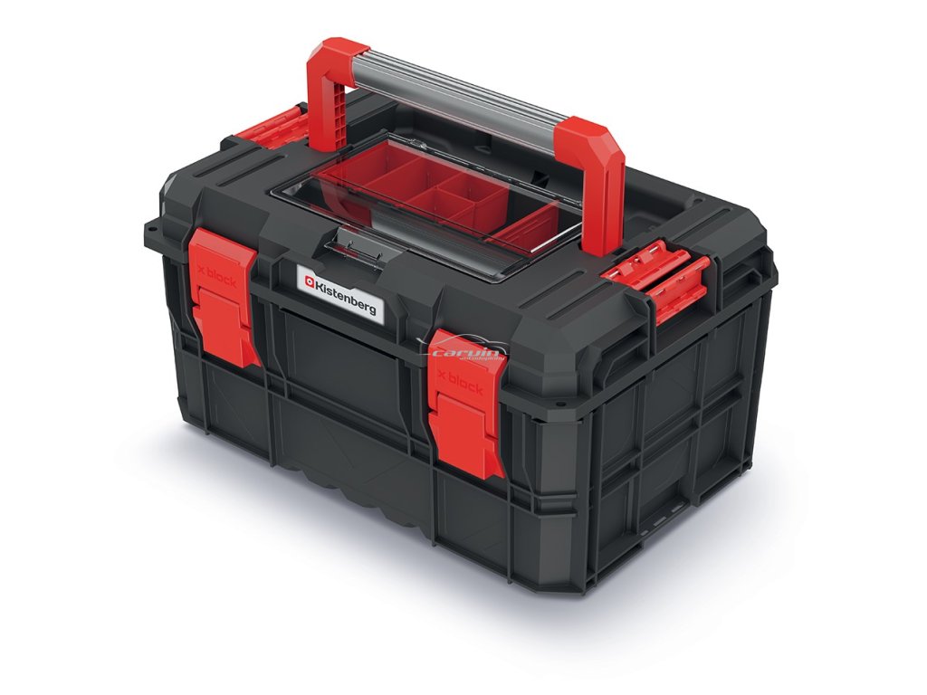 Kufr na nářadí X BLOCK ALU LOG černý 546x380x307cm. ALU LOG - organizéry ve víku, hliníkové držadlo.