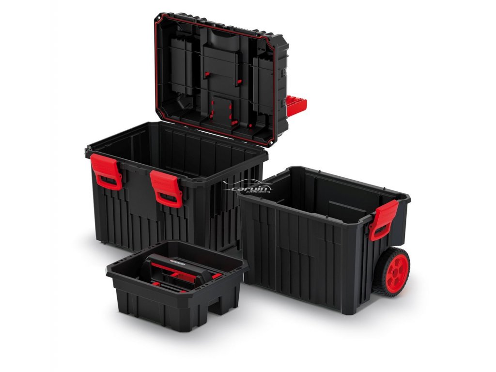 Modulární kufr na nářadí s transp. kolečky HEAVY černý 450x360x640