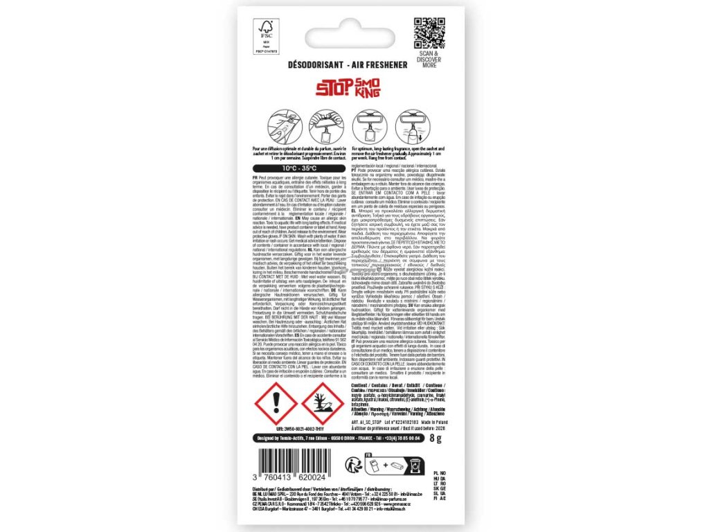 IMAO Airo Stop Smoking je svěží antitabaková vůně do auta, která kombinuje zelené akordy, jemné vodní tóny a elegantní dřevitou složku. Navržena francouzskými parfémářskými mistry Scentway, tento elegantní závěsný parfém účinně neutralizuje zápach cigaret a zároveň v interiéru vytváří dlouhotrvající pocit čistoty a svěžesti. Perfektní pro kuřáky i nekuřáky, kteří chtějí vozu navrátit příjemnou vůni během každé jízdy.