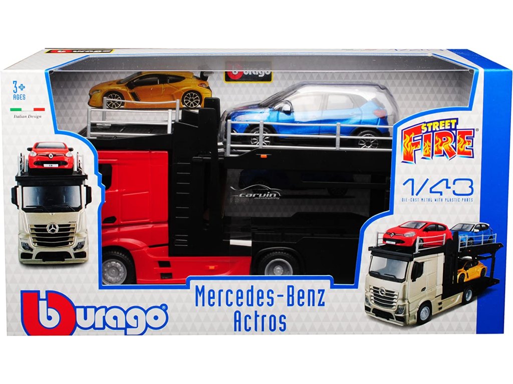 Kovový model Přepravník aut kamion Mercedes Actros a Renault Captur 1:43 Bburago. Délka modelu je 17 cm