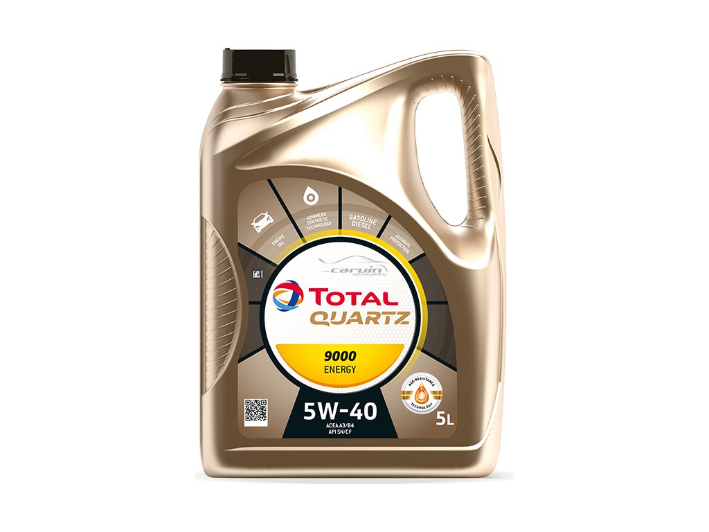 Plně syntetický motorový olej Total Quartz 9000 ENERGY 5W40 A3/B4 pro vozy s benzínovým i dieslovým pohonem, využívající technologii ART (technologie zabraňující stárnutí oleje). Olej s dlouhodobou vynikající stabilitou snižuje tření a poskytuje výbornou ochranu proti opotřebení při dlouhých i kratších cestách s častým startováním, dle specifikace určen pro vozy: VW, Seat, Škoda, Audi, Mercedes, Fiat, Chrysler, Porsche.