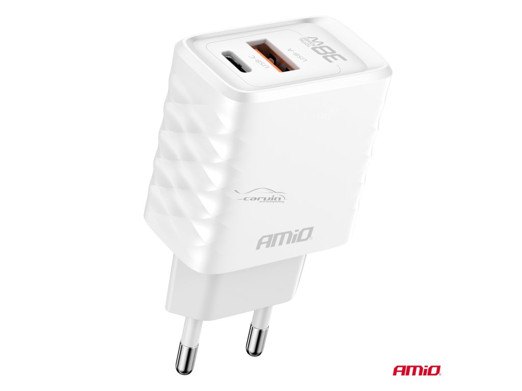 Síťová nabíječka AMiO Quick Charger GaN 38 W (USB-A + USB-C) nabízí moderní a výkonné řešení nabíjení pro vaše smartphony, tablety a další zařízení. Díky technologii GaN (gallium nitrid) dosahuje vysoké účinnosti při kompaktním provedení — ideální pro každodenní použití doma, v kanceláři i na cestách.