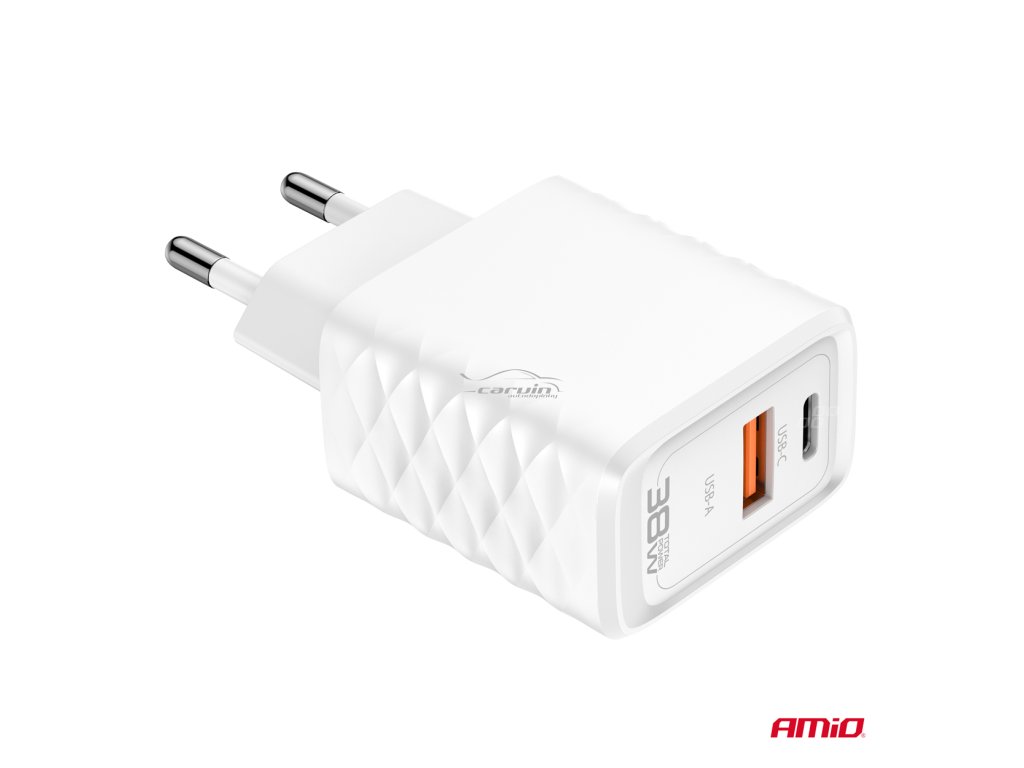 Nabíječka síťová Quick Charger GaN 38W USB-A + USB-C | AMiO