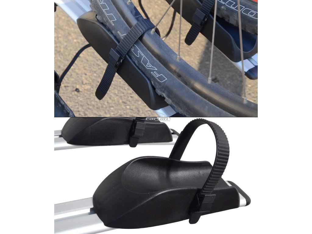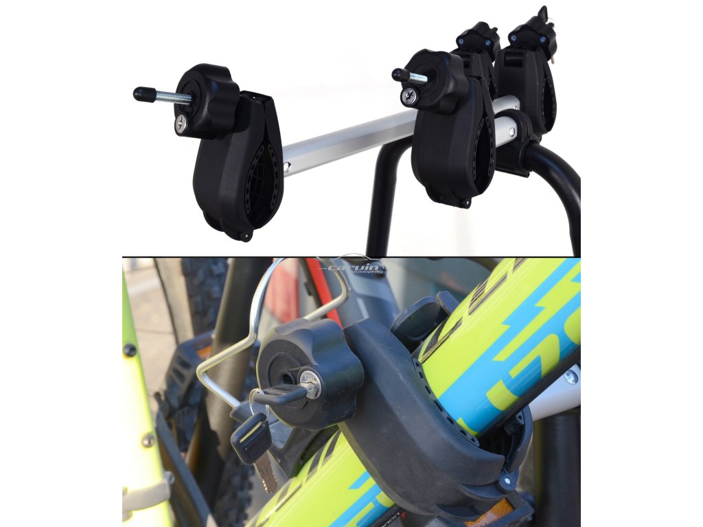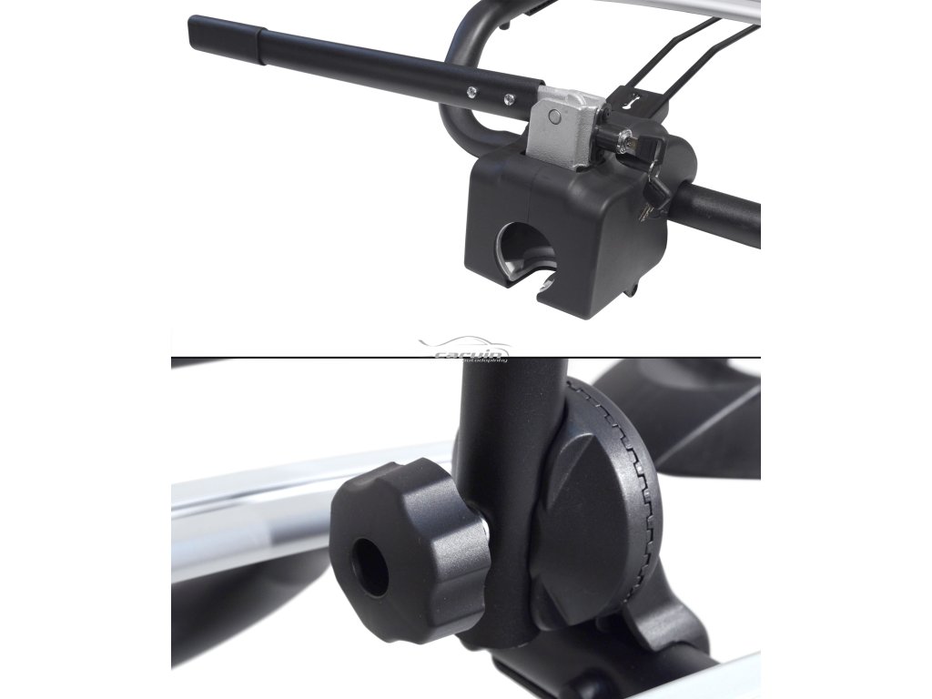 Upevnění kola do nosiče se obejde bez nářadí, provádí se uchycením držáku na rám a dotažením spon na kola, umístěných na základně. Mechanismus je uzamykací a nehrozí tak odcizení kola.