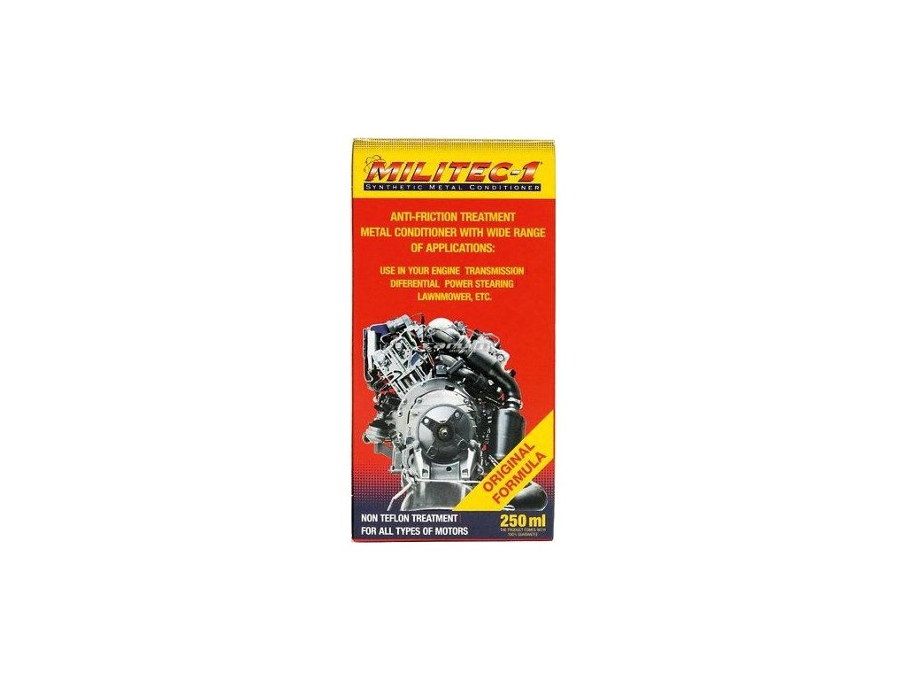 MILITEC - 1 není tradičním doplňkem do oleje. Je 100% čistou syntetickou tekutinou, která neobsahuje žádná pevná tělesa|(jako např. přísady na bázi teflonu, kovů, mědi nebo olova), je prostředkem pro zušlechťování kovů nejlepší jakosti nemění elastické vlastnosti kovů, působí na bázi syntetických derivátů uhlovodíků, chrání kovy stálou syntetickou molekulární vazbou s obsahem inhibitoru koroze. Dokonalé kluzké vlastnosti takto ošetřených ploch MILITECem - 1 jsou nesrovnatelně kvalitnější, což přispívá k lehčímu, kultivovanějšímu a ekonomičtějšímu provozu motoru či stroje. Nelze opomenout značně zvýšený výkon a provozní spolehlivost a to při extrémním zatížení.