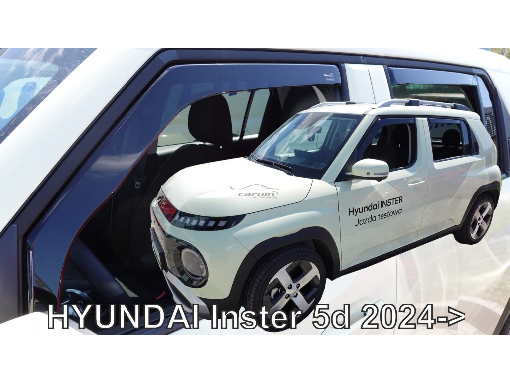 Ofuky - deflektory pro automobil Hyundai Inster . Sada obsahuje 4ks přesných ofuků na přední a zadní okna vč. sady montážních plíšků ( pozn. není u každého modelu podmínkou).