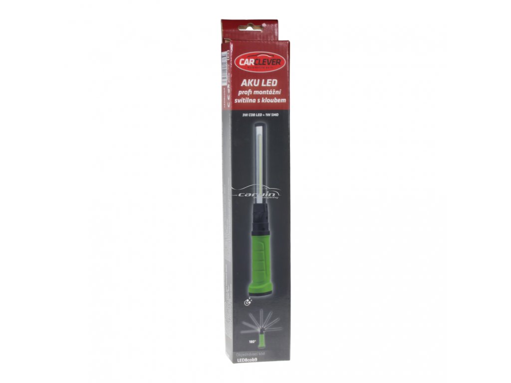 Nabíjecí pracovní ( montážní ) / rekreační LED lampa. Jako zdroj světla má 3W COB LED modul + 1W SMD. Konstrukčně je COB LED tvořena jednotlivými čipy, umístěnými na plošném spoji a pokryta vrstvou luminoforu, vytvářející dohromady homogenní svíticí plochu.
