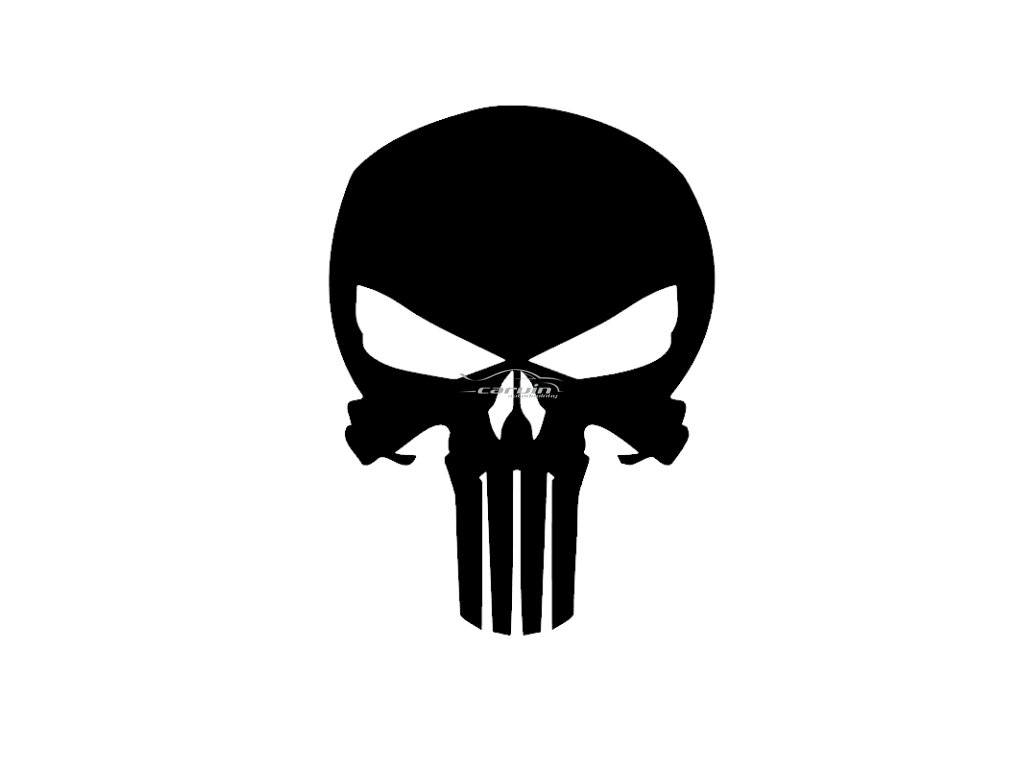 Vyřezávaná samolepka Punisher lebky o rozměru cca 12 cm. Vyrobená z kvalitní fólie Oracal v matné černé barvě. Vhodné na auto, notebook, motorku, kolo či jakýkoli hladký povrch.