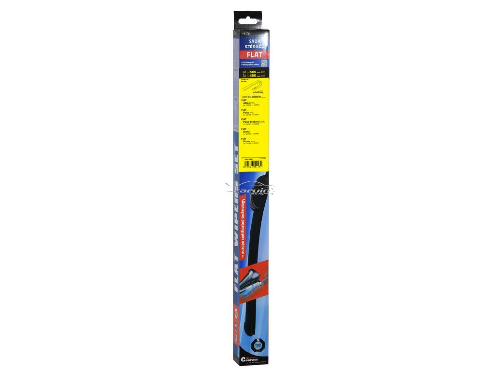 Plochý stěrač Flat, Vám zajistí rovnoměrné stírání okna bez rozmazání vzhledem k tomu, že jsou na stěrači použity gumičky s přísadou grafitu.