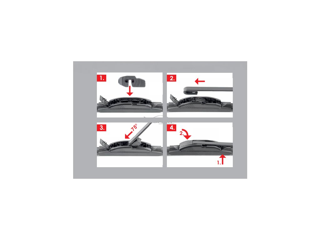 - osaďte stěrač přiloženým nebo dokoupeným adaptérem a po té namontujte na rameno