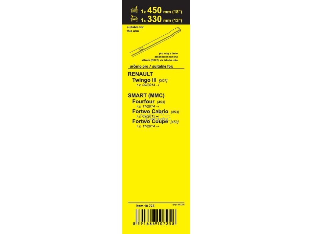 | Kategorie: | Stěrače bezramínkové sada 2ks Renault Twingo 09/2014- |