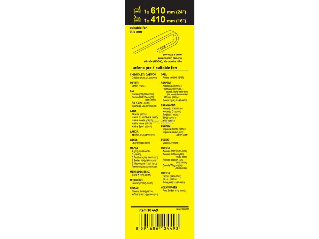 Před objednáním Vám doporučujeme překontrolovat způsob upnutí stěrače na Vašem voze, tedy koncový tvar ramena, který naleznete u vybraných stěračů v galerii obrázků. V některých výjimečných případech je možné, že výrobce u stejného modelu automobilu použil různé druhy upnutí.