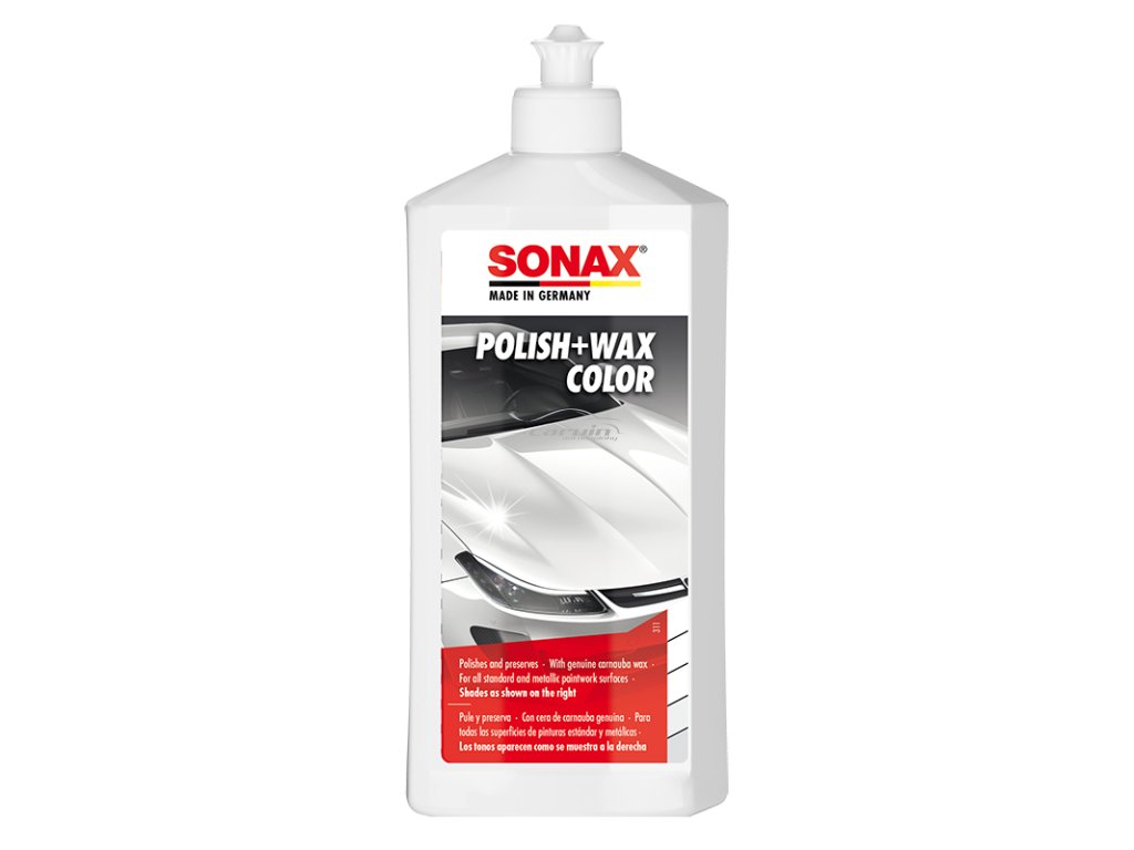 SONAX Barevná leštěnka - bílá je určená k osvěžení barevného vzhledu laku; čistí, leští a konzervuje v jednom kroku. Barevné pigmenty překryjí drobné škrábance a poškození laku např. od kamínků. Osvěžuje barevný vzhled laku a poskytuje mu vysoký lesk s dlouhodobým účinkem. Dodává zářivou barvu a chrání před povětrnostními podmínkami. Je určena pro pastelové, metalické i perleťové laky.