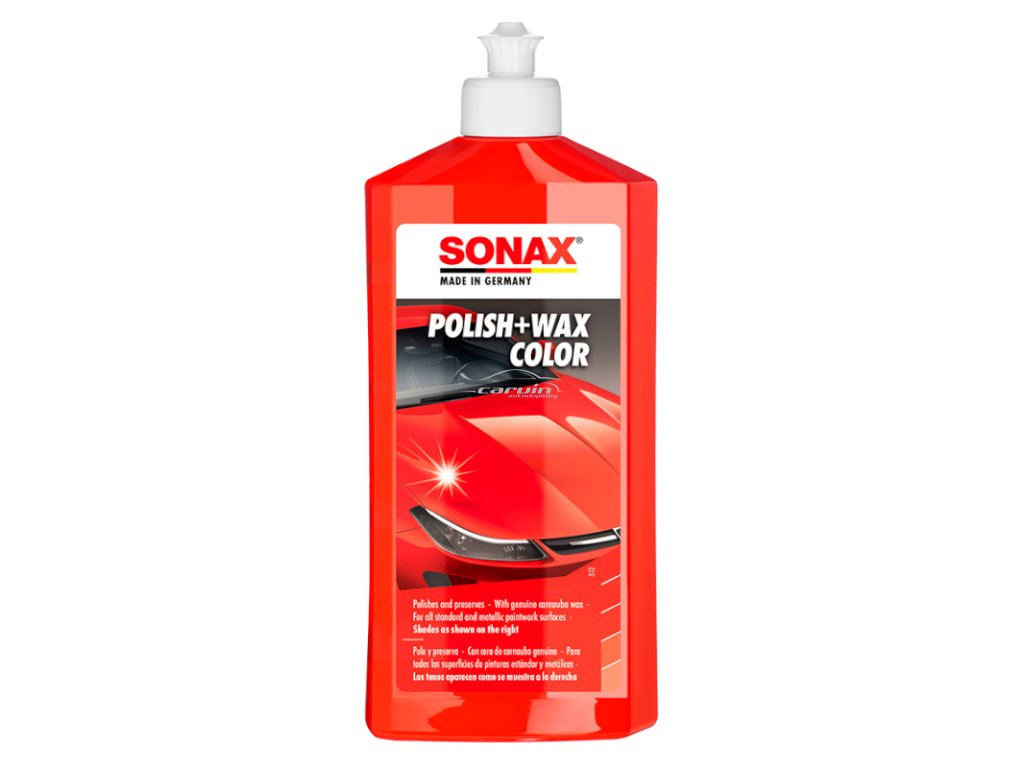 SONAX Color Polish červená 500 ml je speciální barevná leštěnka určená pro péči o černé laky automobilů. Tento produkt v jednom kroku čistí, leští a konzervuje povrch laku. Díky unikátním barevným pigmentům dokáže zakrýt drobné škrábance a další menší poškození, například od kamínků. Ve složení je obsažen přírodní karnaubský vosk, který osvěžuje barvu laku a dodává povrchu dlouhotrvající vysoký lesk.