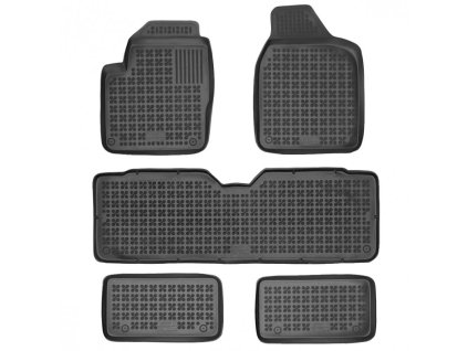 Sada (5 ks) přesně pasujících gumových koberců pro Volkswagen Sharan 5místný 1995-2010. Praktický doplněk s cca 10 mm okrajem chránící podlahu Vašeho auta před vlhkostí a nečistotami v každém počasí.