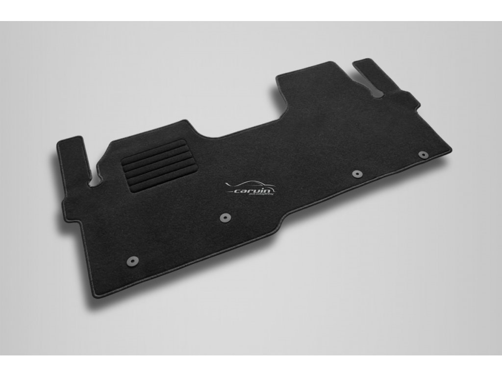 Sada přesně pasujících textilních koberců pro Ford Transit Custom 3místný 2023-. Praktický doplněk vyrobený v Čechách firmou RIGUM z kvalitního materiálu chránící podlahu auta před nečistotami a částečně snižují hluk uvnitř vozu.
